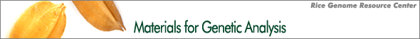 ![]() This mapping population consists of 182 backcross inbred lines (BILs) developed from backcrosses of rice varieties Koshihikari / Kasalath // Koshihikari by the single-seed descent method. The genotype of each line was determined using 162 RFLP markers distributed along the 12 rice chromosomes and a linkage map was constructed. The linkage map may serve as a framework for mapping of additional DNA markers and can be useful in analysis of other QTLs. Please cite the reference below for publication of results using this material.